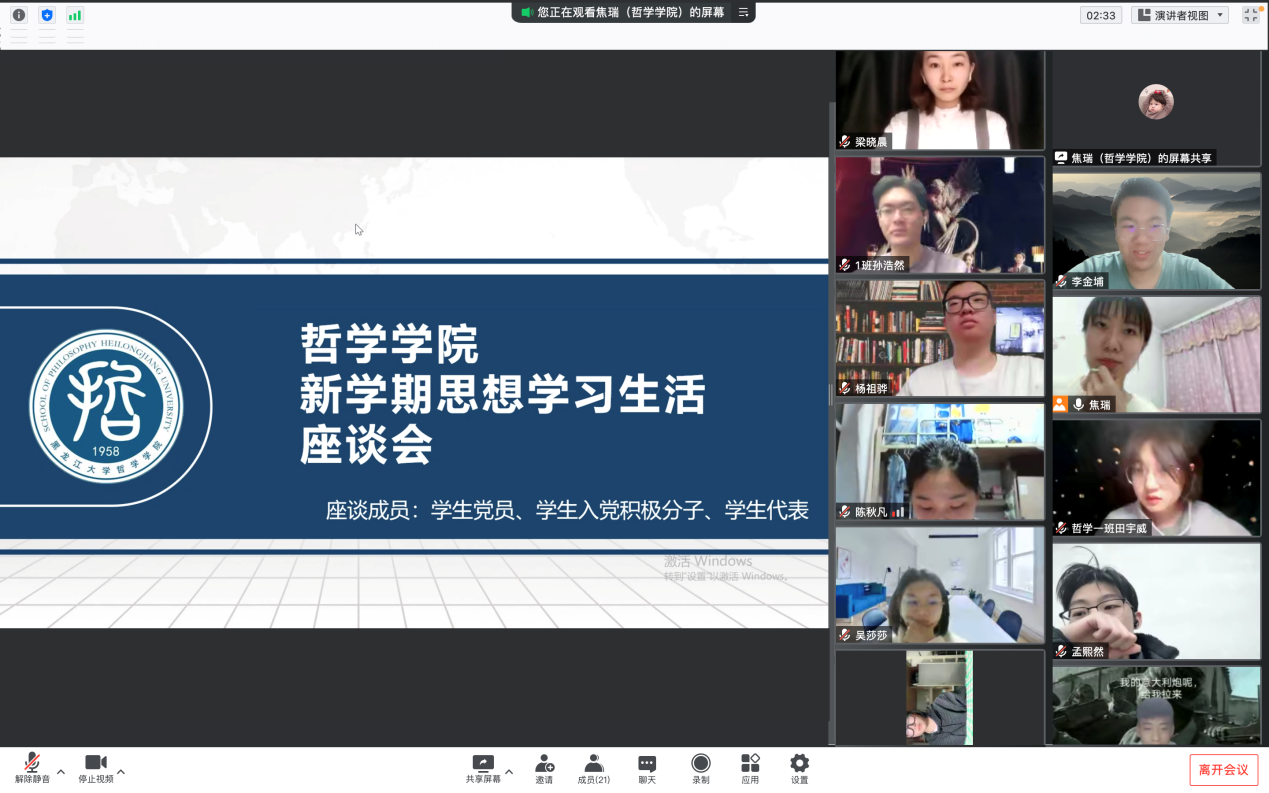 为深入了解学生日常动态,为学生在思想、学习和生活等多方面提供更为有力的保障,同时引领学生充分提高自我认识与自我规划能力,哲学学院积极响应学校学生工作部的号召,于3月18日至21日,分年级分层次召开线上学生思想、学习生活调研会,2019级辅导员孙庆斌老师、2018级和2020级辅导员张博伦老师、2021级辅导员焦瑞老师分别主持会议,各年级学生干部、学生党员、入党积极分子及学生代表参加会议。
