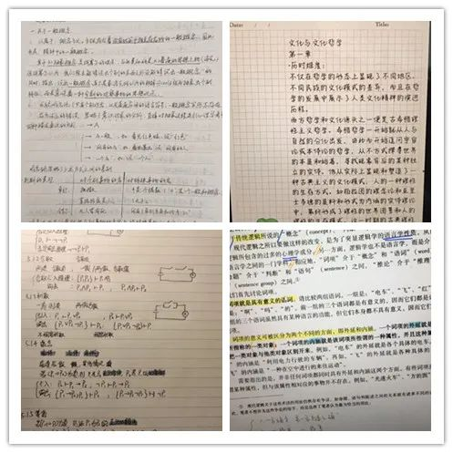 书山有路勤为径,学海无涯苦作舟。同学们在7天内每天坚持在微信群分享在上网课时记下的笔记,内容形式多样,如纯手写笔记、书籍旁批、课后思考笔记等。战“疫”不停学,同学们一方面利用网络教学设备进行网课学习,另一方面借助笔记打卡的形式巩固知识,增强学习兴趣,分享学习心得,展现学习成果。让我们看看同学们的精彩表现吧!