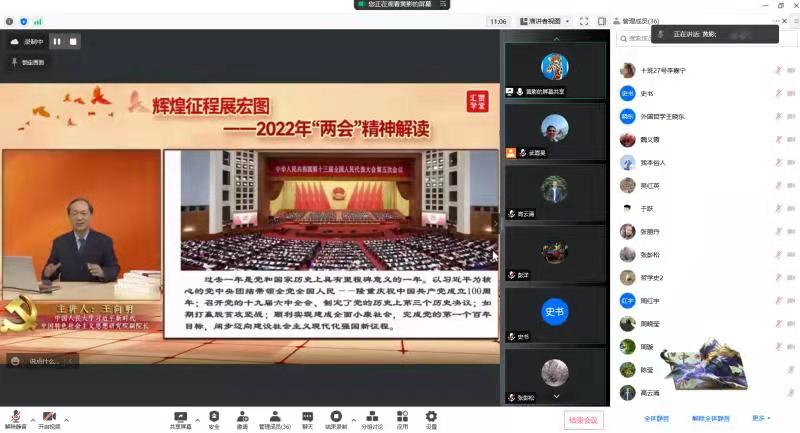 为深入学习贯彻全国“两会”精神,紧跟政策导向,全面理解核心要义,2022年3月30日哲学学院党总支召开会议进行了专门工作布置,要求学生党支部分别召开会议进行学习研讨;2022年4月6日,哲学学院党总支理论学习中心组召开线上专题学习研讨会,会议由学院党总支书记孙美晖主持,学院党总支成员、领导班子全体、各党支部书记参加了会议。