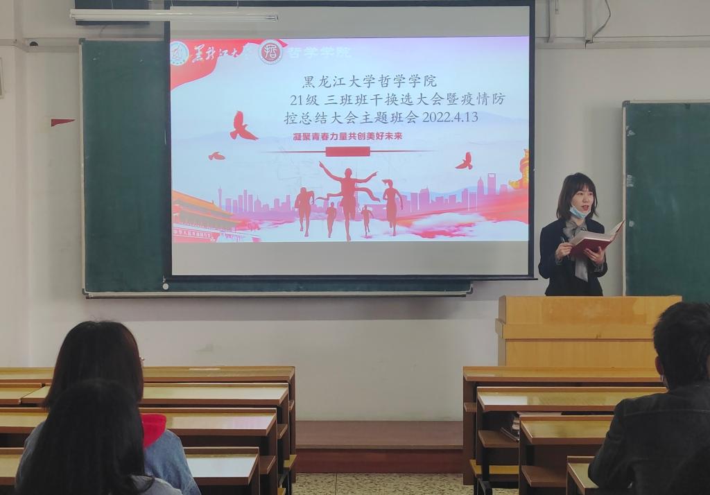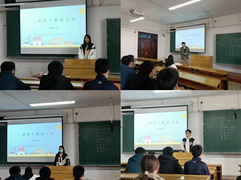 新的学期已经开始,为了进一步强化我院学风建设,优化学生干部内部结构,让班级各项工作与管理能够继续有效进行,更好地服务广大同学,为同学们的学习与生活营造团结向上的良好氛围,2022年4月13日,哲学学院21级分批次分班级组织“责任在心间,青春向未来”班干换选班会。