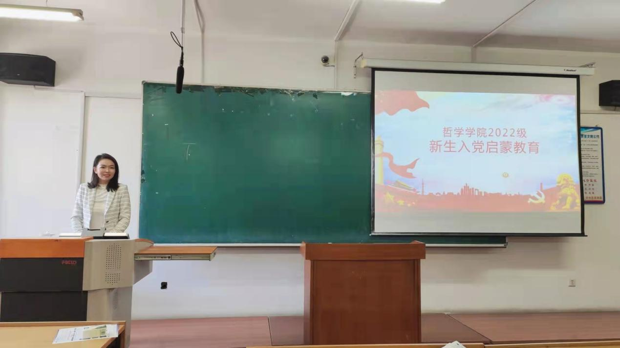 习总书记在全国高校思政工作会议上多次提出“要深入开展党史学习教育”。如果能把党史学习教育开展好,对于培养社会主义建设者和接班人具有重要意义。为了引导新生端正入党动机、坚定理想信念,让新生了解加入中国共产党的要求以及重要性,哲学学院于2022年9月28日在汇文楼开展2022级新生入党启蒙教育。哲学学院党总支副书记张丽丹老师,2021级、2022级辅导员焦瑞老师以及2022级全体新生参加本次会议。
