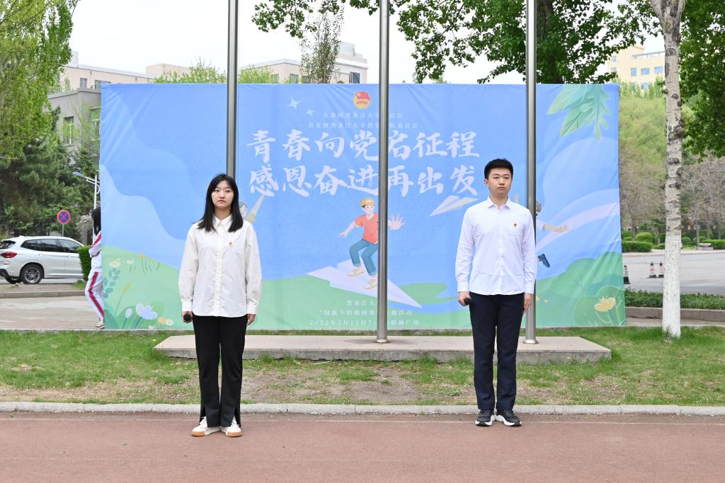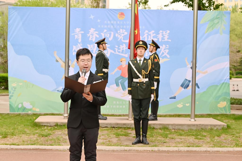 为了学习与贯彻落实党的二十大精神,增强黑大学子的国家观念,发扬爱国主义精神,提高民族自豪感,将习总书记的谆谆教诲殷殷嘱托镌刻于心,做起而行之的行动者,当攻坚克难的奋斗者,做与时代同心同向的有为青年,在激情奋斗中绽放青春光芒,展示青春风采。5月15日早7点,哲学学院于联通广场举行“青春向党启征程,感恩奋进再出发”主题升旗仪式。哲学学院党总支书记孙美晖、哲学学院院长蒋红雨、哲学学院党总支副书记张丽丹、哲学学院副院长周来顺、哲学学院正处级辅导员孙庆斌、校团委文化艺术部部长姚力、校团委宣传调研部童一、学院各年级辅导员以及各年级学生代表等参加了此次升旗仪式。升旗仪式由哲学学院团委书记张博伦主持。