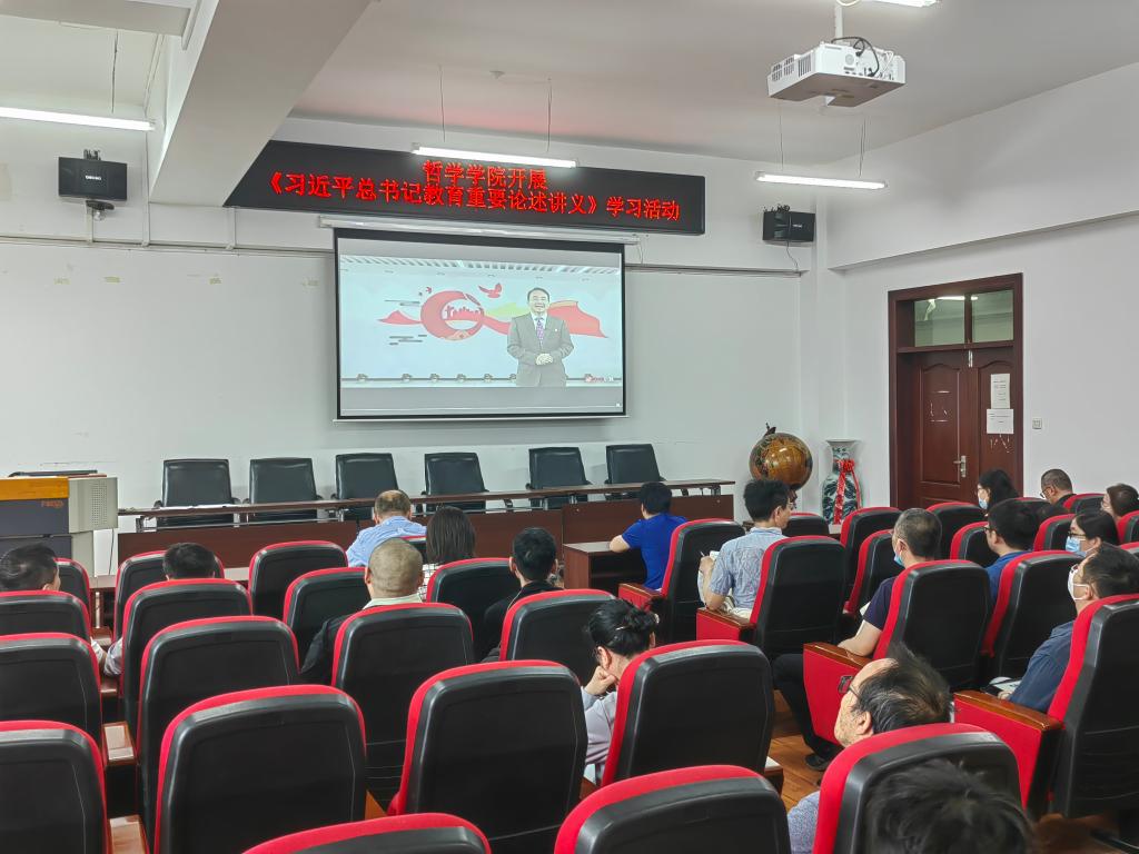 为全面落实《中共教育部党组关于印发<习近平总书记教育重要论述讲义>的通知》(教党〔2020〕32号)要求,促进学院全体教师学习了解《习近平总书记关于教育的重要论述》的科学内涵、核心要义、精神实质、实践要求和重大意义,按照校教师工作部办公室《关于组织开展<习近平总书记教育重要论述讲义>学习的通知》要求,哲学学院于2023年6月7日下午召开学院大会安排部署相关工作,并组织相关人员开展集中观看视频学习活动。