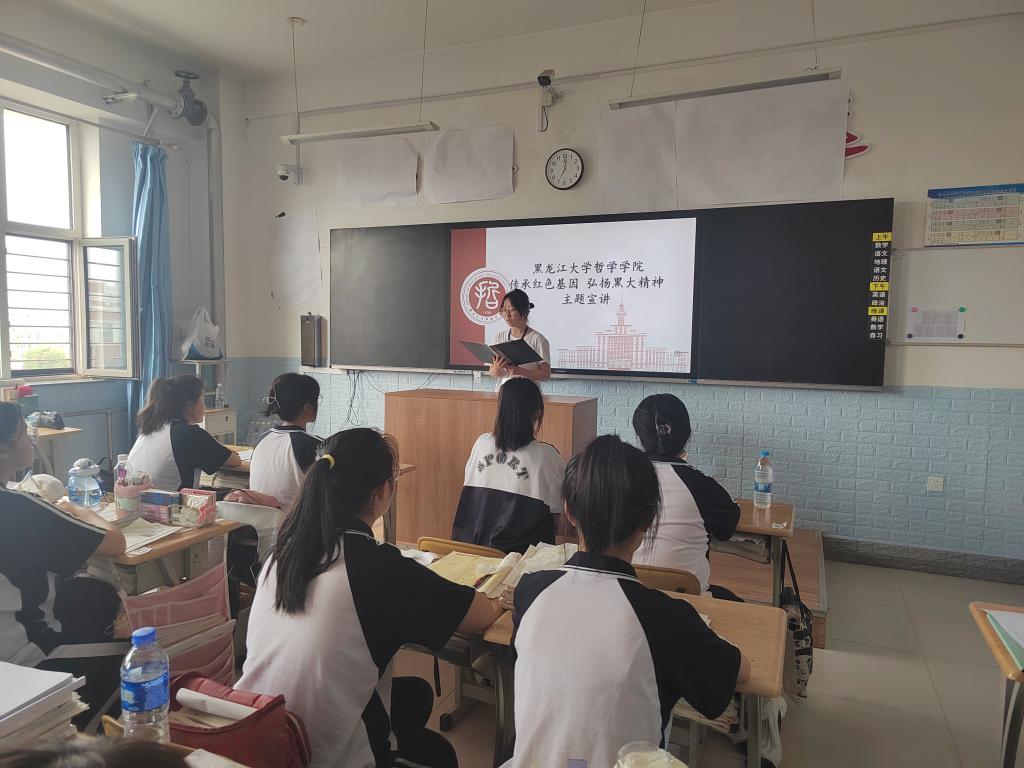 哲学学院“红色研学”团队坚持贯彻“踏、学、研、用”的实践模式,深入挖掘红色文化,先后进入哈尔滨市前进小学、哈尔滨市松雷中学、江西省都昌县第一中学、大庆市肇州县、齐齐哈尔市依安县实验中学、齐齐哈尔市西满英烈纪念馆等地进行“红色研学”“云”宣讲、理论宣讲“进校园”“进班级”“进课堂”“沉浸式”研学宣讲等主题系列活动。以“赓续红色血脉,点亮沙曼星火”等为主题,讲述了欧亿体育·(中国)官方网站作为黑龙江人民子弟校感人至深的“黑大故事”“哲学故事”以及新时代黑龙江主动融入国家发展战略,各方面取得了丰硕成果,为国家经济社会发展作出重要贡献的光辉事迹。