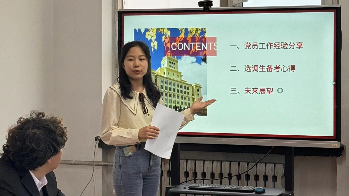 邢睿桐同学结合自身经历,从工作经验、选调生备考心得和对未来的展望三个部分进行经验分享。在工作经验方面,强调作为党员发展对象需要保持高度的热情和严谨的工作作风,积极参加学习交流活动,重视校内外各项社会实践。在选调生备考心得方面,建议党员发展对象要适应考试的紧张状态,及时利用碎片化时间进行学习。在未来展望方面,谈到作为新时代的中国青年,我们要敢为人先,砥砺奋斗,将理论与实践相结合,创造出属于青年人的绚烂。