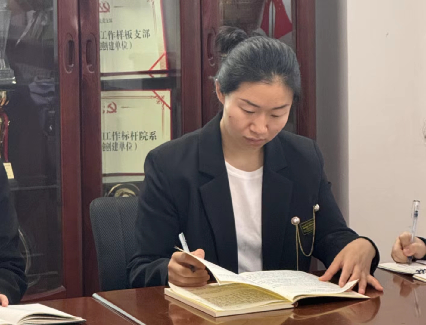 在学习环节之后,全体党员发展对象进行交流研讨,分享自己对榜样力量的深刻感悟和集中培训中的学习体会。董嘉禾表示,要将榜样的优秀品质切实融入到日常生活中和工作中,在日常的点点滴滴中不断提升自身的素养和能力,逐渐向榜样靠拢,成为身边人的榜样力量。滕晓慧表示,在专题学习环节中深刻感受到了党的理论创新的强大生命力,从马克思主义中国化的一次次飞跃中,看到了党不断与时俱进、开拓创新的智慧与勇气。在交流过程中,全体党员发展对象交换彼此的意见与观点,在研讨中提高了政治觉悟与砥砺奋进的力量。