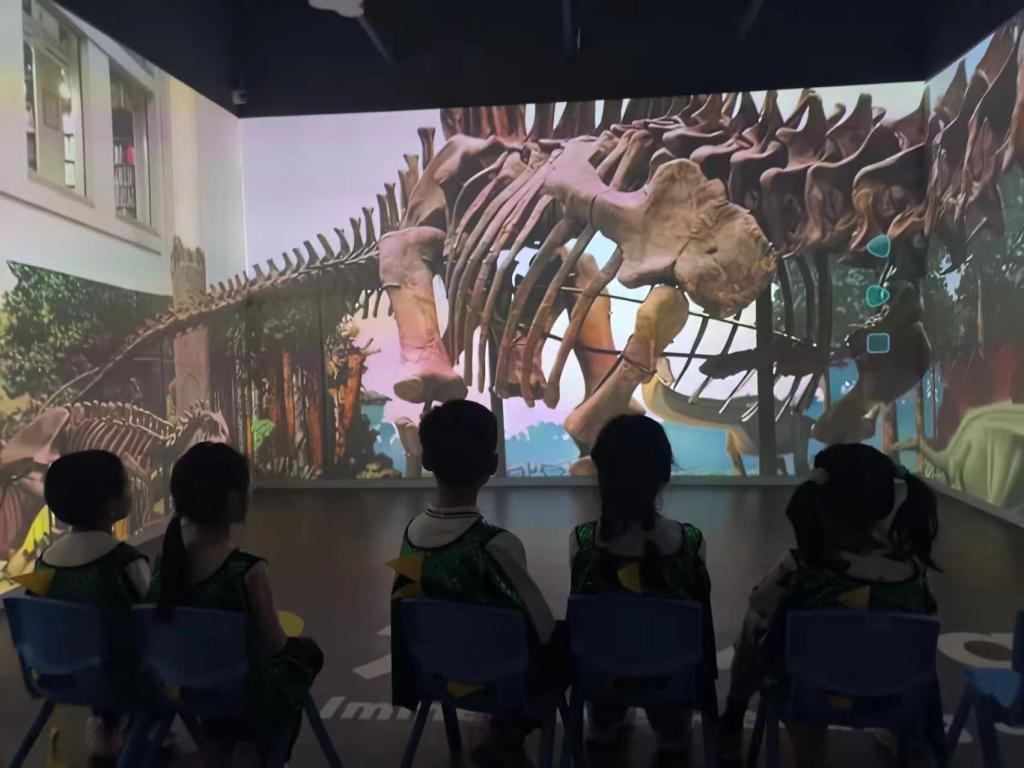踏入神秘天地,探寻新学识。从三叠纪到侏罗纪,再到白垩纪,志愿者们向小朋友们详细讲解了不同时期恐龙的种类、外形特征和生活习性,生动地再现了恐龙世界的神奇与壮观。而后志愿者们凭借恐龙模型玩具吸引小朋友们的兴趣,通过提问的方式来激发小朋友们的想象力,让其在游戏中了解恐龙的饮食习惯,在欢声笑语中掌握知识。
