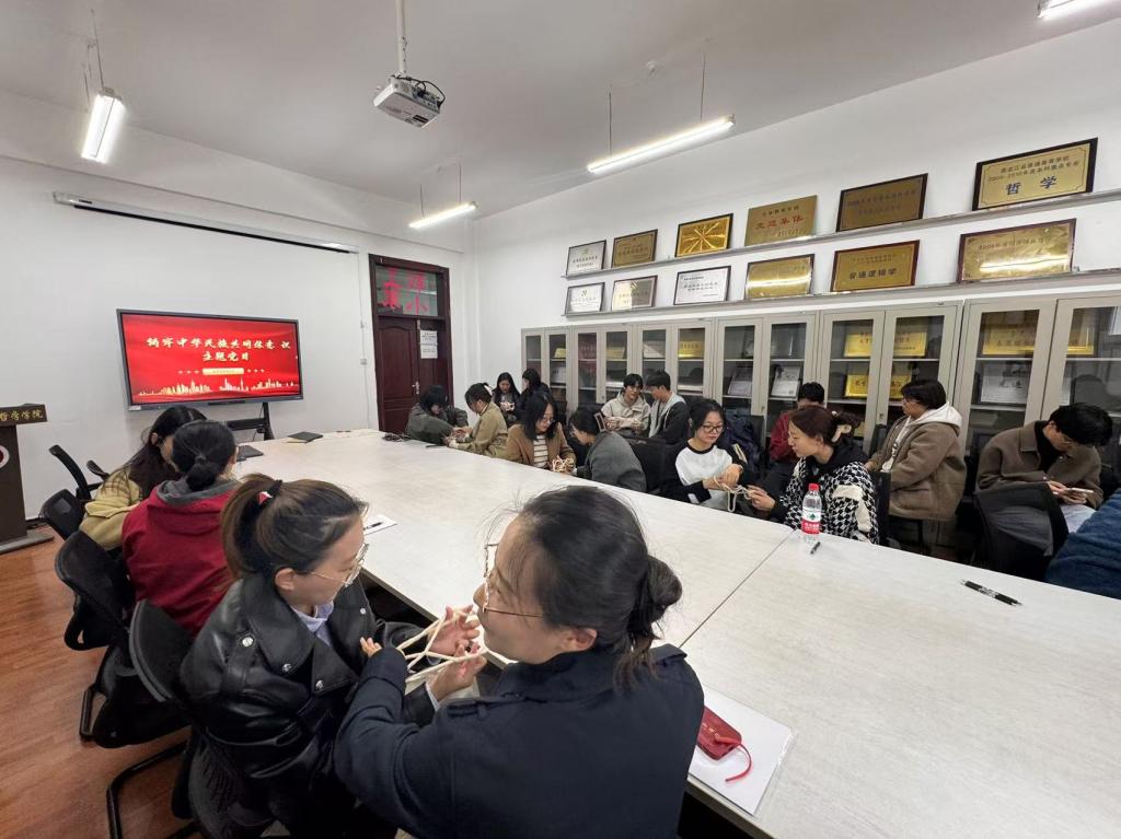 在游戏体验环节,大家共同参与传统民俗游戏——翻花绳,一根小小的绳子在手中翻转飞舞,勾起了大家的童年回忆。通过这种轻松有趣的方式,大家深刻体会到了传统民俗游戏所蕴含的团结协作精神,以及中华民族传统文化的博大精深。