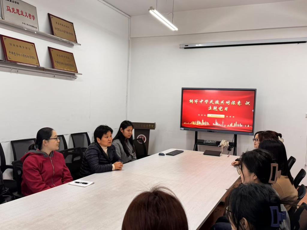 为深入学习贯彻习近平新时代中国特色社会主义思想和党的二十届三中全会精神,进一步加强民族团结进步教育,促进各民族学生交往交流交融,哲学学院党总支于10 月16 日在汇文楼 922 开展 “铸牢中华民族共同体意识”主题党日活动。本次活动由党总支书记孙美晖主持,教师党员和学生党员代表参加。