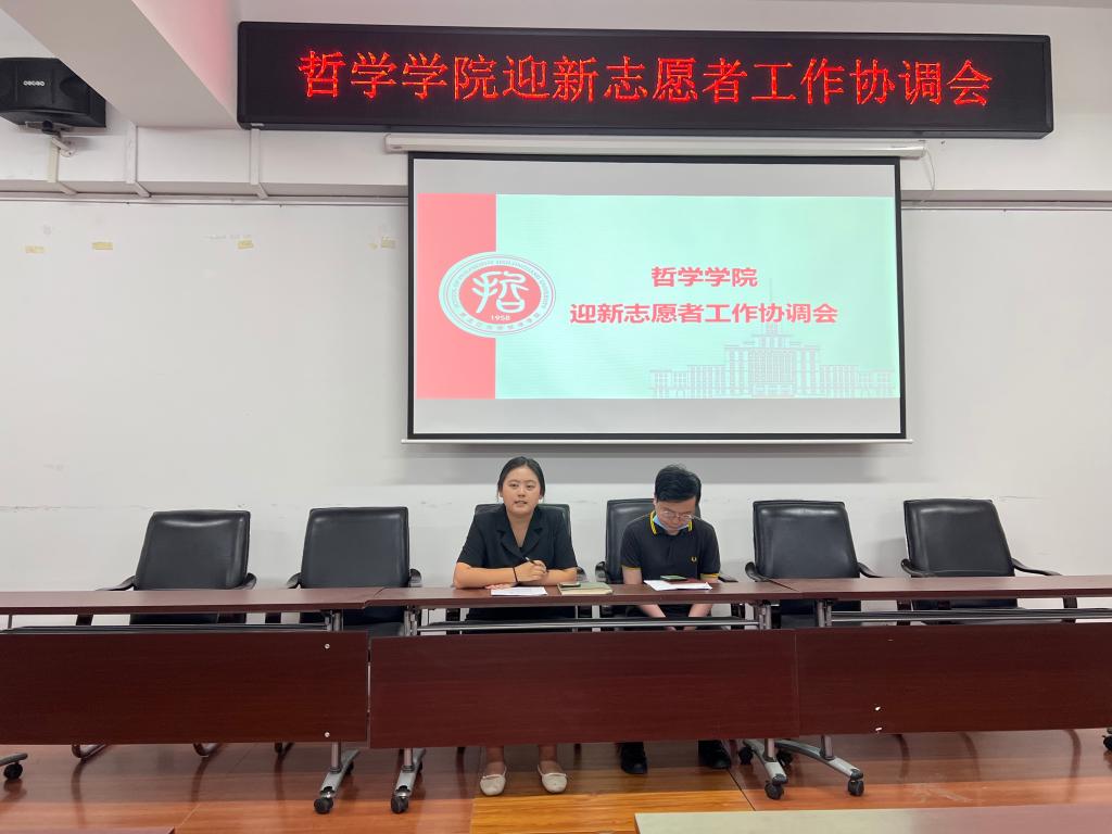 为扎实做好 2024 年迎新工作,确保迎新流程安全有序、高效全面,哲学学院于8月30日18:00在汇文楼937会议室召开2024级迎新工作布置会。本次会议由哲学学院团委副书记、2024级辅导员赵惠雪主持,哲学学院团委书记张博伦出席会议,学院学生会全体成员、青年志愿者协会全体成员、2024级新生班主任、迎新志愿者参加会议。