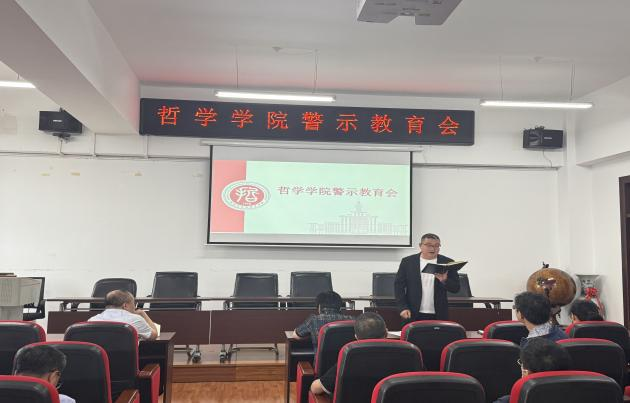 为扎实开展深入贯彻中央八项规定精神学习教育,落实学校警示教育会精神,巩固深化能力作风建设,部署推进学院专项整改整治工作,6月4日,哲学学院召开警示教育会,全院教职工参加。