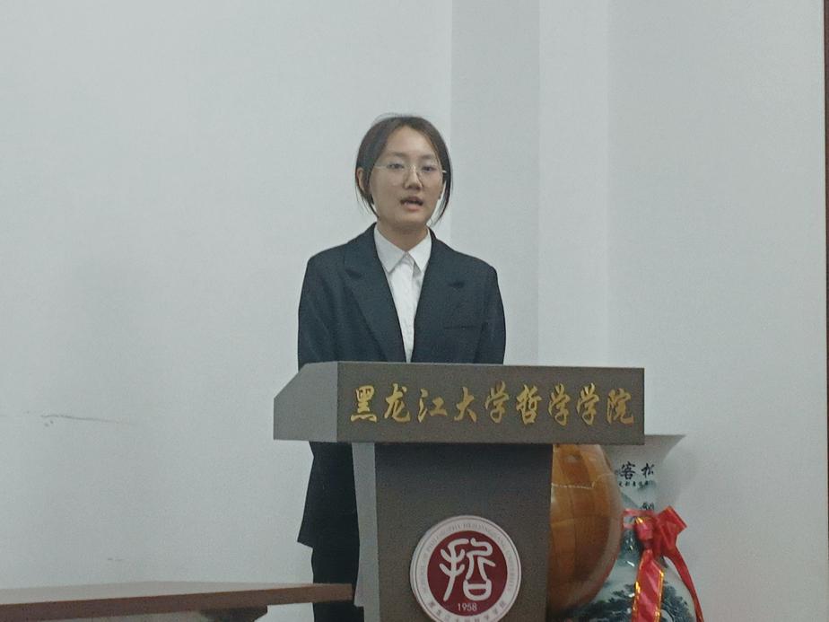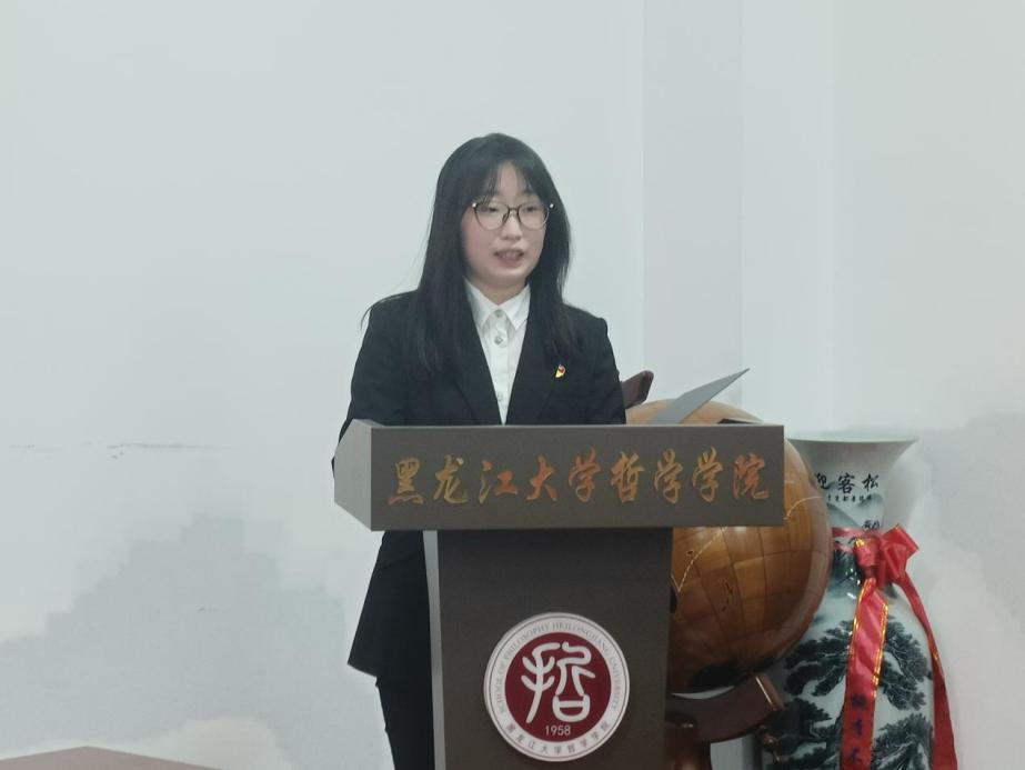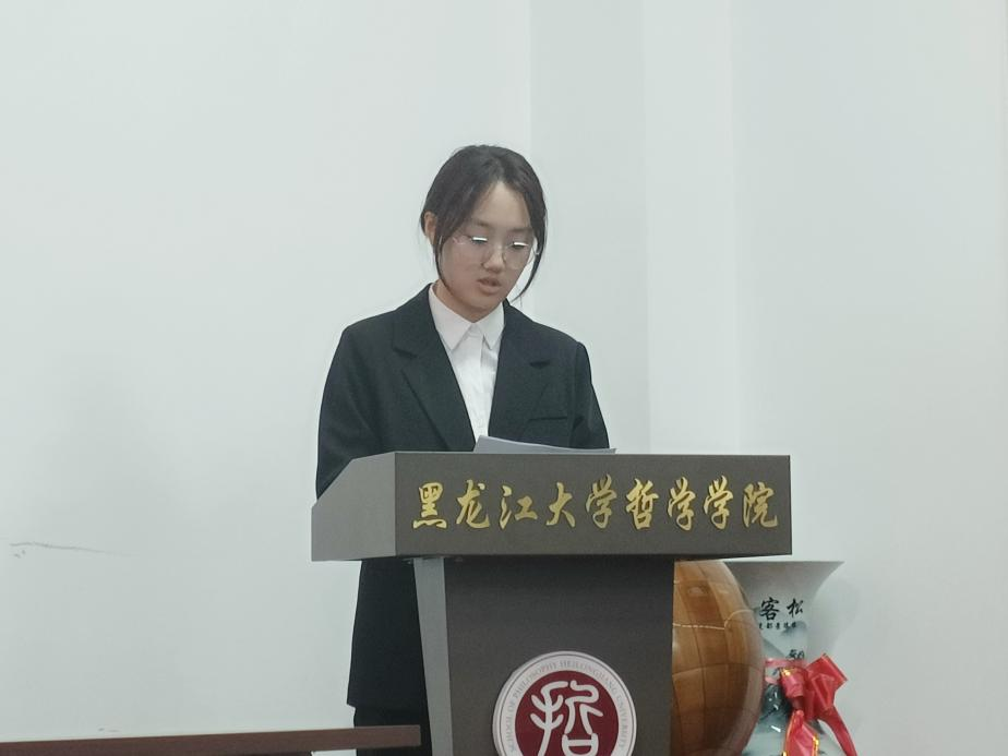 新当选的哲学学院第十五届学生会主席团代表杨双进行发言。