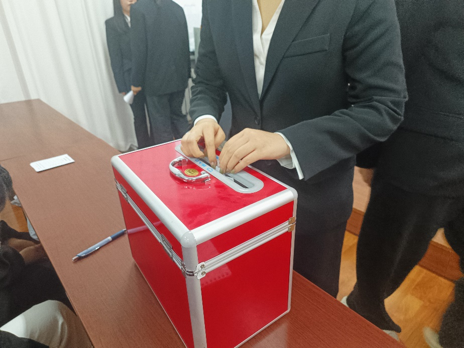 随后,学院第十四届学生会执行主席李昕豫宣读《哲学学院第十五届学生会换届选举办法》。大会秉持公平、公正、公开原则,经前期自主报名、资格审查环节,全体成员通过无记名投票选举产生新一届主席团成员。