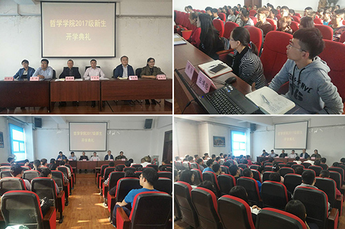 开学典礼在庄严的国歌中拉开帷幕。首先,孙庆斌书记向大家介绍了在座的各位领导、老师、并代表哲学学院向75名来自全国各地的2017级新同学表示热烈的欢迎。他希望2017级新同学要树立远大理想目标,尽快熟悉大学的学习生活节奏,努力学习,积极参与各项活动,在哲学学院度过充实美好的大学生活。2017级艾世悦同学作为新生代表表达了初入大学的感想和对即将开启的大学生活的憧憬,告别过往,展望未来,并励志珍惜时光,努力学习。学院学生会主席、2015级孙月同学代表全体在校生与新同学们交流了自己对大学生活的感想,分享了宝贵的经验,鼓励大家充分利用学习资源,抓住机遇,潜心学习,锻炼自我,丰富大学生活。接下来,周晓莹老师、刘伟冬老师分别进行了发言。周老师勉励同学们要明确自己的人生目标,不要放松,勤于思考、勤于学习,处理好人际关系。刘老师则谈到在大学期间要多读书,学习好外语,增强哲学基础理论素养。典礼最后,院长罗跃军向同学们详细地介绍了学院的办学历史、师资力量、学科优势和专业特色。他希望同学们尽快转变角色,培养自己的兴趣,鼓励同学们要满怀热情,坚定信念,学好专业知识,学会把读书、思考、实践有效结合起来,做到从被动学习向主动学习转变,以饱满的姿态迎接接下来的大学生活。