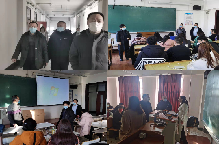 为贯彻落实学校新学期开学工作会议精神,保证良好的教学秩序,在疫情防控常态化下,做好新学期返校复课相关工作,哲学学院孙美晖书记、蒋红雨院长、张丽丹副书记、周来顺副院长、高来源副院长,以及教务员孟老师、辅导员焦老师,组成的教学秩序检查组,深入线上、线下课堂检查学院各年级学生新学期返校复课情况。