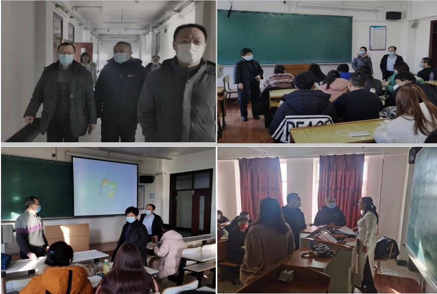 为贯彻落实学校新学期开学工作会议精神,保证良好的教学秩序,在疫情防控常态化下,做好新学期返校复课相关工作,哲学学院孙美晖书记、蒋红雨院长、张丽丹副书记、周来顺副院长、高来源副院长,以及教务员孟老师、辅导员焦老师,组成的教学秩序检查组,深入线上、线下课堂检查学院各年级学生新学期返校复课情况。