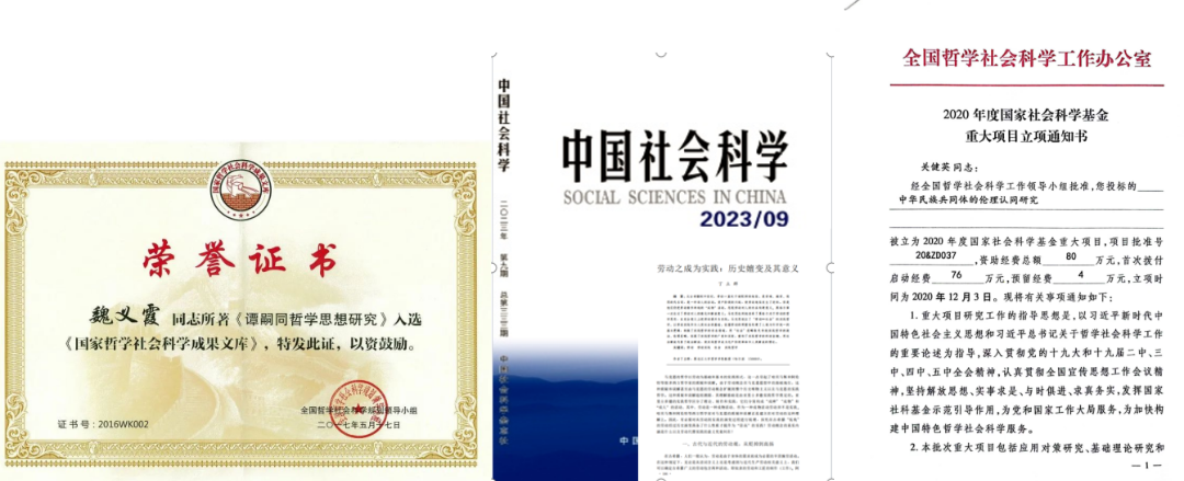 在科研方面,哲学学院取得了令人瞩目的成绩。近年来,承担马克思主义理论研究和重大工程项目&国家哲学社会科学基金重大项目3项,承担国家级、省部级等科研项目共160余项,获得科研经费共1500余万元,获得国家和省部级人文社科奖130余项;在A&HCI索引期刊、中国社会科学、哲学研究等具有全球影响力的重要期刊发表学术论文共600余篇;在人民出版社、商务印书馆等权威出版社出版学术专著计90余部。现有黑龙江省首批重点高端智库——黑龙江省文化发展战略研究中心;黑龙江省哲学社会学科重点研究基地——黑龙江省马克思主义哲学研究基地;中共中央编译局共建基地——欧亿体育·(中国)官方网站文化发展战略研究基地;黑龙江省首批协同创新中心——新时代中国特色社会主义文化理论与实践协同创新中心;黑龙江省高校人文社会科学重点研究基地——欧亿体育·(中国)官方网站文化哲学研究中心、中国近现代思想文化研究中心。
