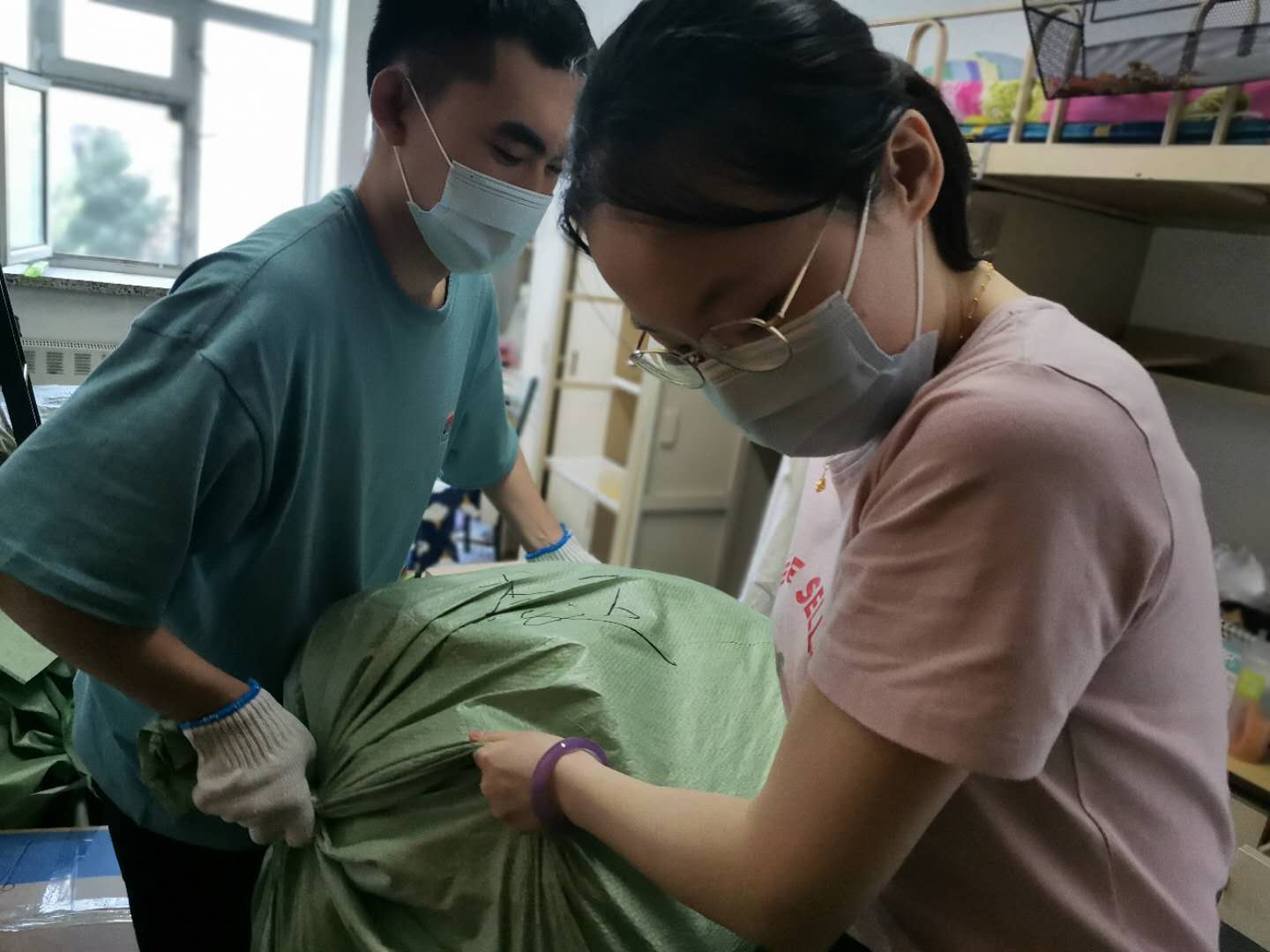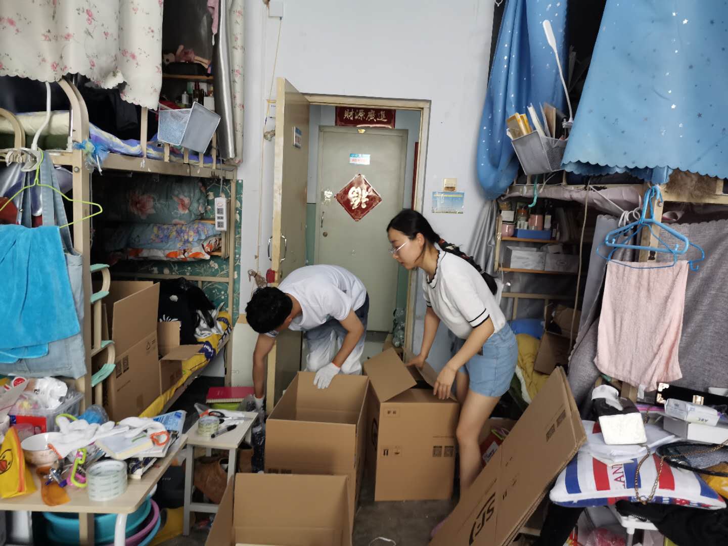 时值六月初夏,又一个毕业季来临。转眼间,毕业生同学们和母校告别,和寝室告别。为了让各位毕业生同学安全、便捷、高效地完成毕业退寝,带上行李与梦想,踏上人生新旅程。为推进落实校党委组织部《关于做好2020届毕业生党员离校有关工作的通知》相关要求,结合学院工作实际,按照学院总体部署,部分符合条件的党员学生干部回到母校回到寝室,在学院统一安排下有序开展志愿服务活动,帮助其他同学进行行李整理打包。